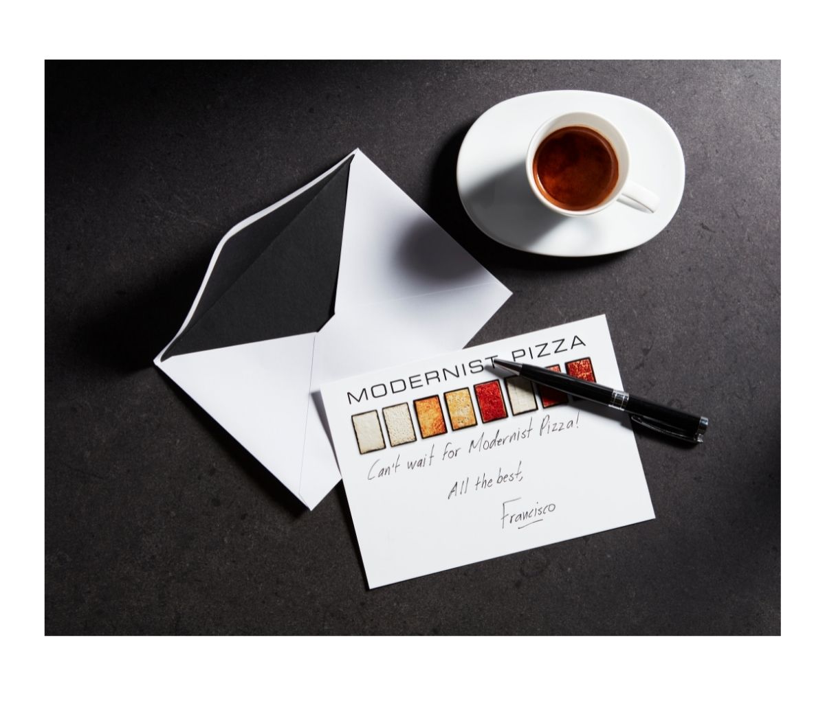 Say hello with the beauty of pizza. This set of twelve 5″x7″ notecards features iconic images from the groundbreaking book Modernist Pizza. With black-lined envelopes and a sheet of 20 stickers, the set is perfect for thank-you notes, invitations, and everyday correspondence.