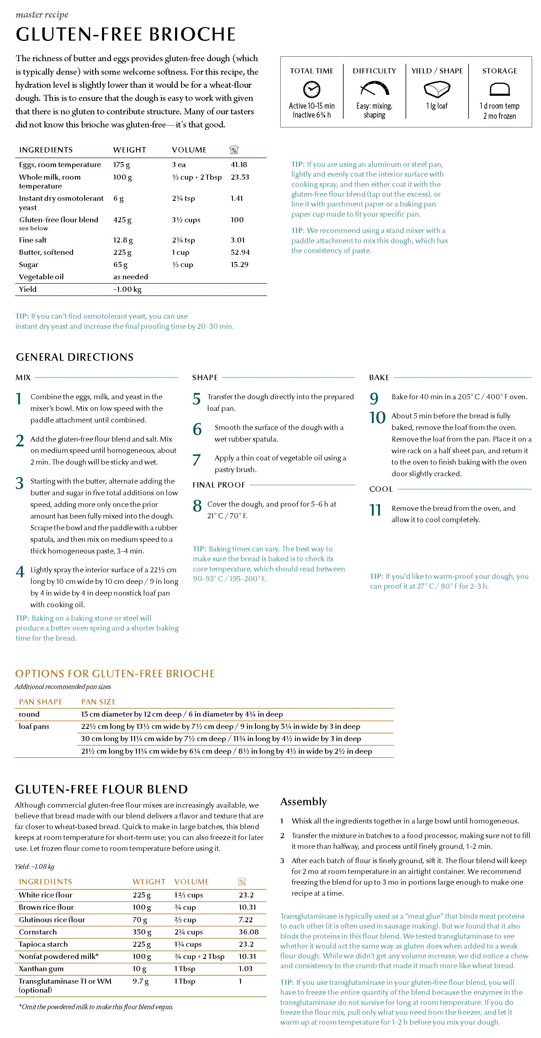 Gluten-free brioche is a great place to start. Brioche is the granddaddy of sweet enriched breads; it’s rich and tender (and deeply satisfying) because it’s laden with butter. The richness of butter and eggs provides gluten-free dough (which is typically dense) with some welcome softness. For this recipe, the hydration level is slightly lower than it would be for a wheat-flour dough. This is to ensure that the dough is easy to work with given that there is no gluten to contribute structure. Many of our tasters did not know this brioche was gluten-free—it’s that good.