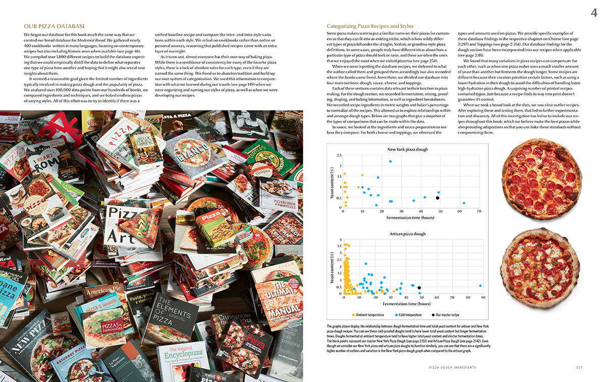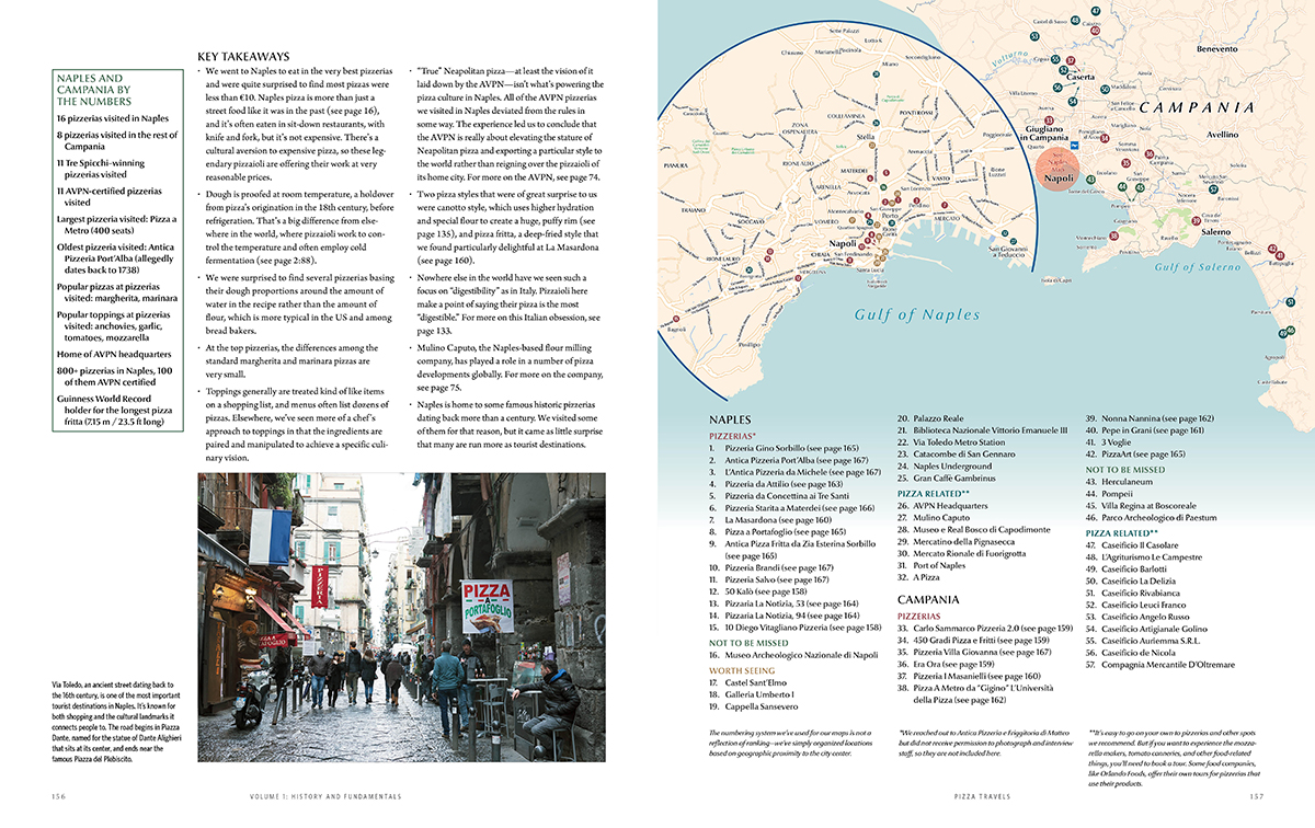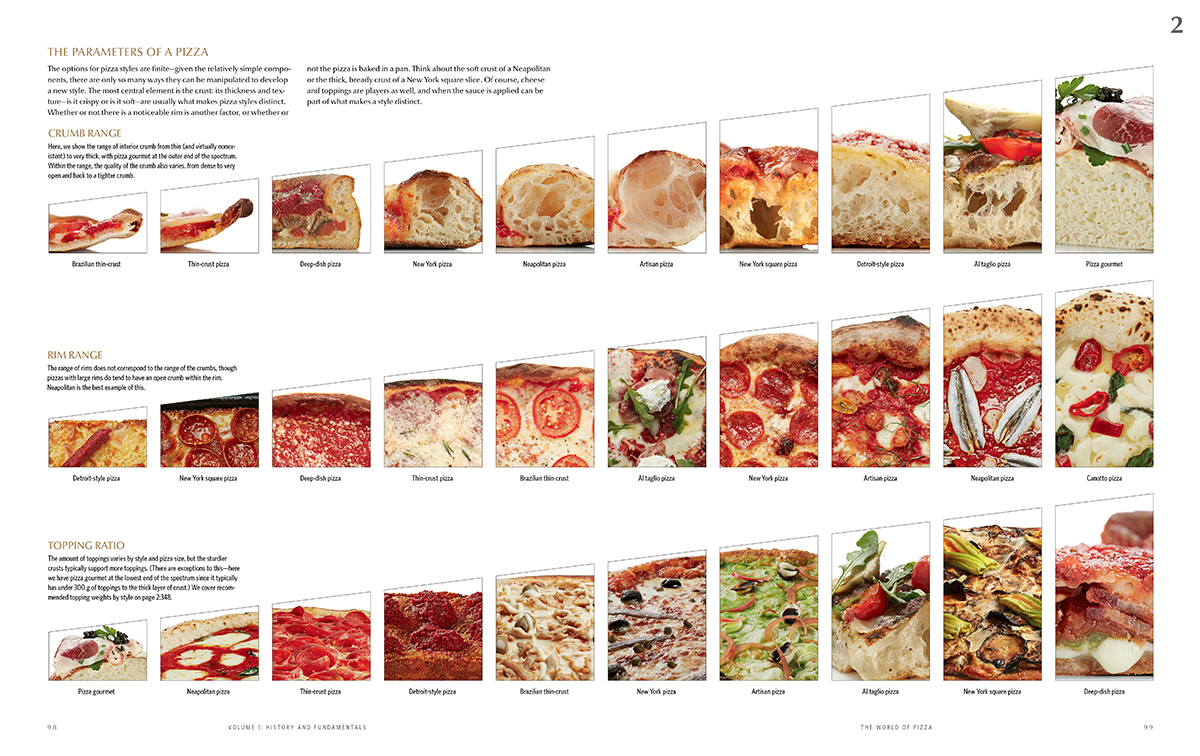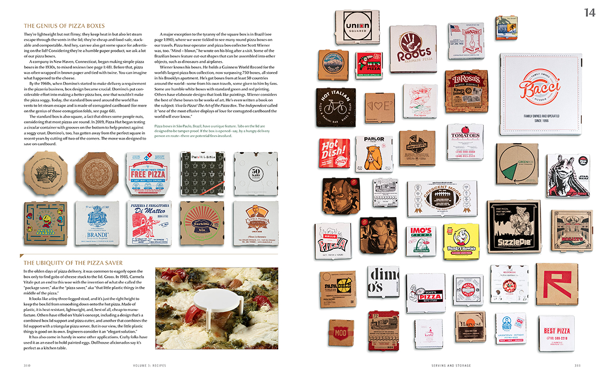 The first volume lays out our research into pizza’s history and place in the world at large, plus our guide to top pizza destinations. It also covers the science of pizza dough ingredients and pizza ovens.
