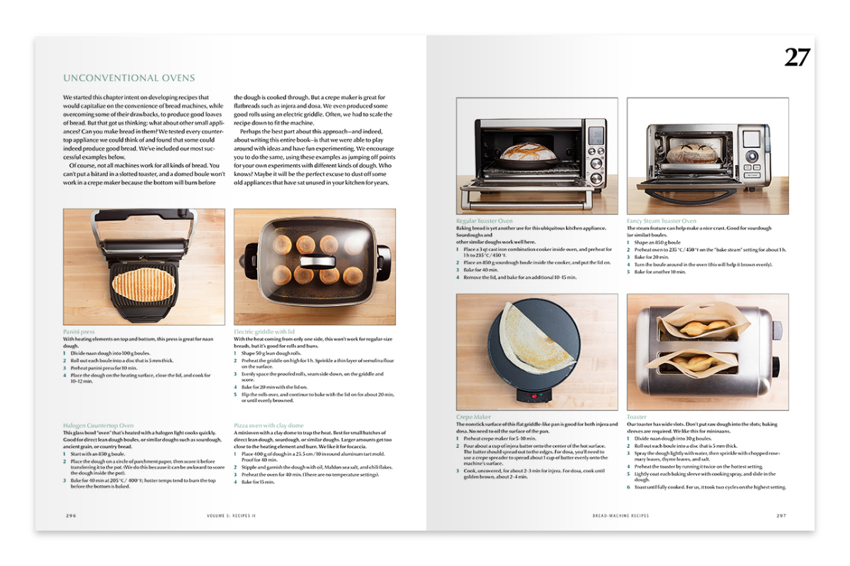 The recipes continue in Volume 5. These chapters explore Flatbreads and Pizza, then move on to Bagels, Pretzels and Bao, Gluten-free breads, and Bread Machines.