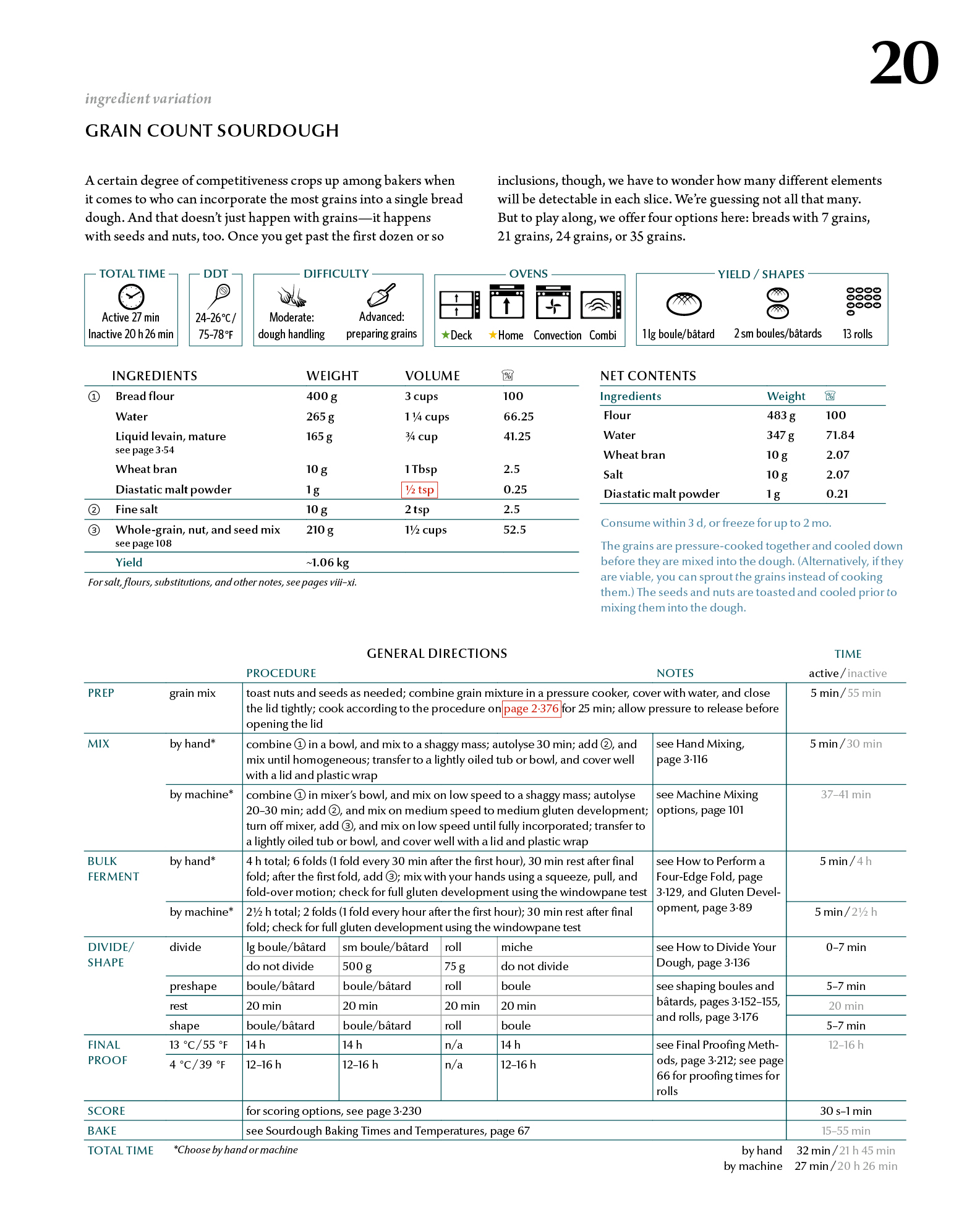 | Grain Count Sourdough | Chapter 20 / Page 107 | Diastatic malt powder volume measurement corrected; prep procedure cross reference corrected |